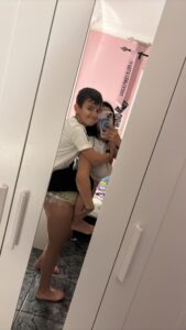 Di lapnya si kecil ku dengan hati-hati , aku hanya diam saja